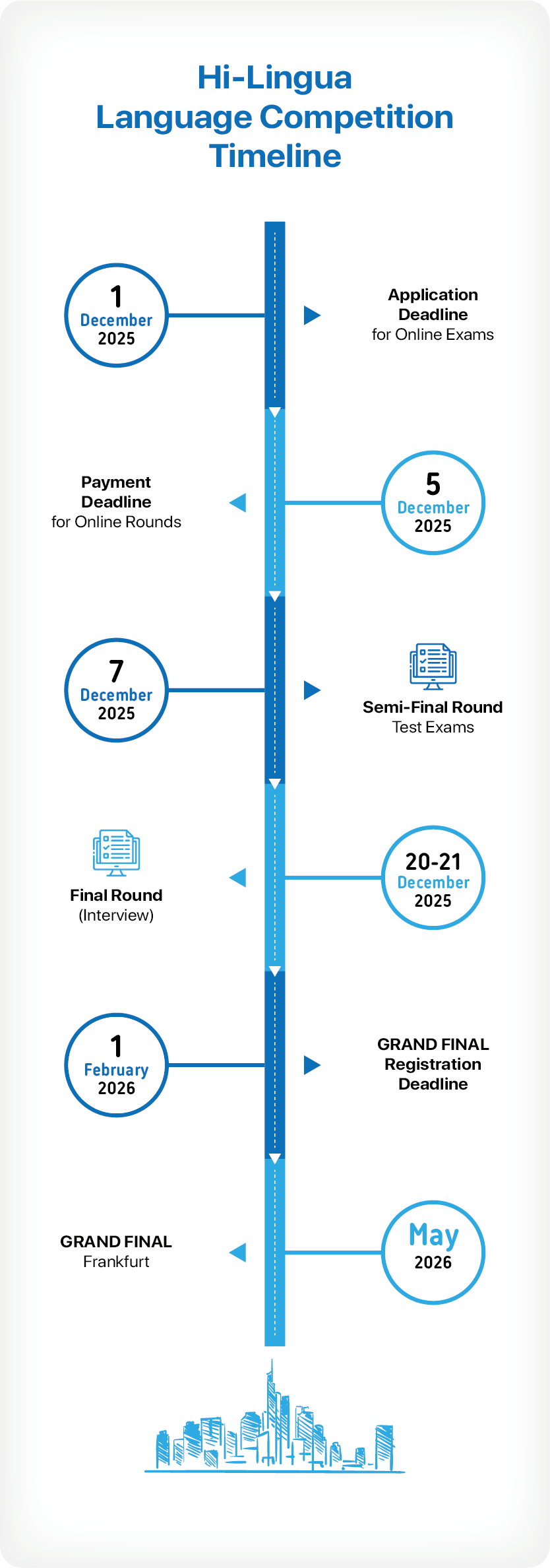 Exam Conditions 1) Exams will be held ONLINE. 2) Exams are available in 4 languages: English, French, Spanish and German. 3) A student can participate in the competition in any language or...